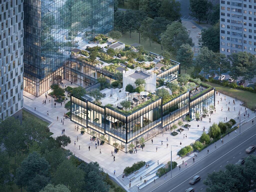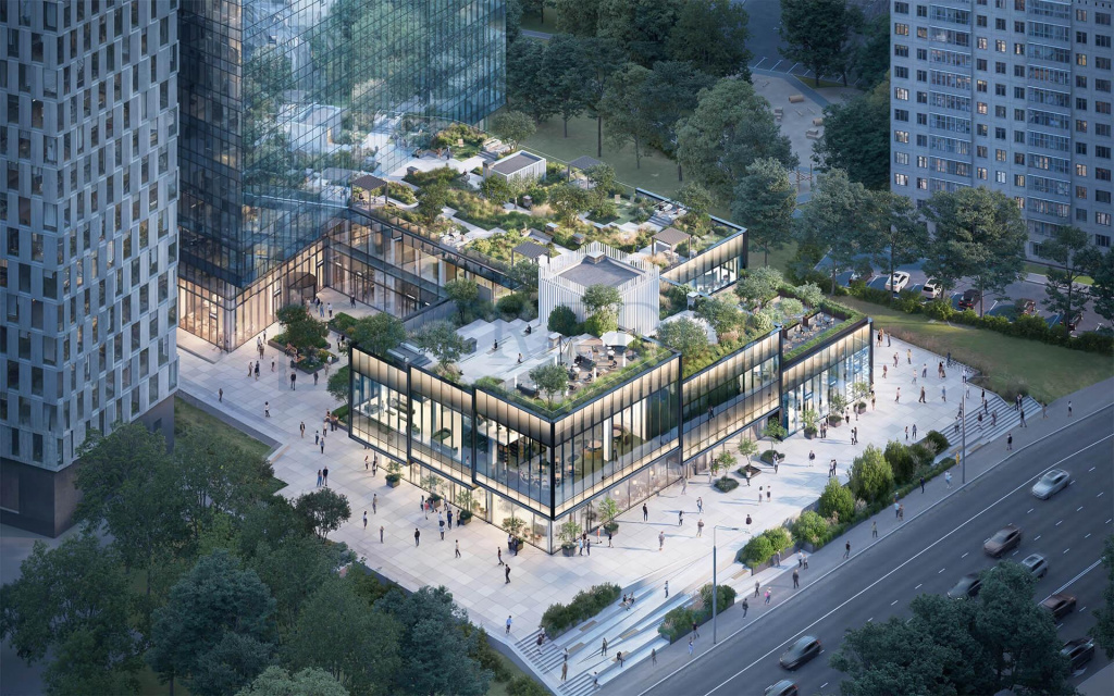 Инфраструктура дополнена 2 000 м² ритейла и кафе, 1 500 м² открытых террас и благоустроенной парковой зоной площадью 2 000 м².