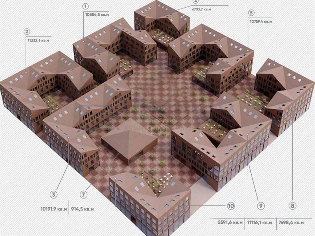 Общая площадь проекта- 84 000 кв.м. - это 10 отдельно стоящих зданий.