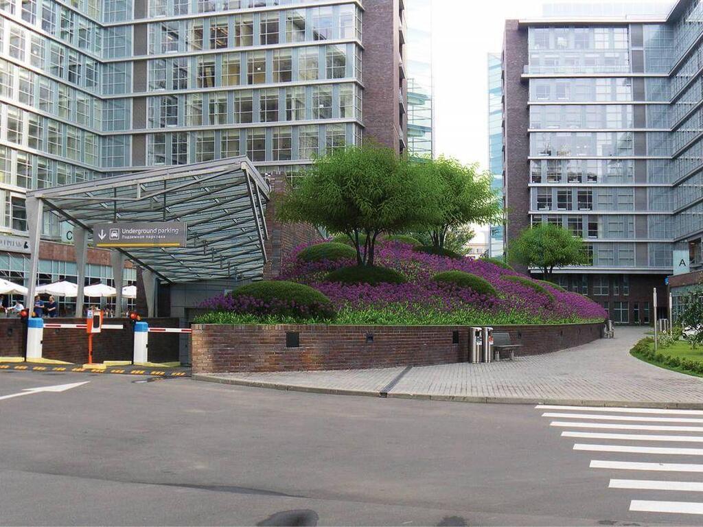 Под офисными корпусами предусмотрена подземная двухуровневая автостоянка с отдельным въездом и выездом.