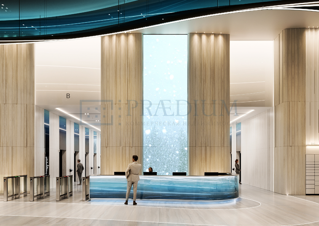Просторные и функциональные двусветные лобби в каждой из башен площадью до 500м2, с высотой потолка 8м, витражным остеклением и авторским дизайном.