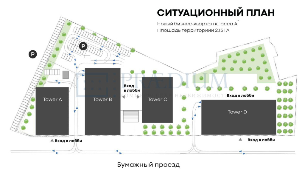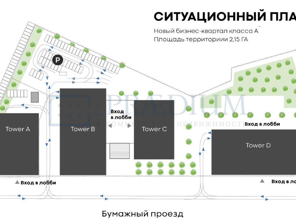 Описание: Башня "Tower В" и башня "Tower С" объединены общим стилобатом.