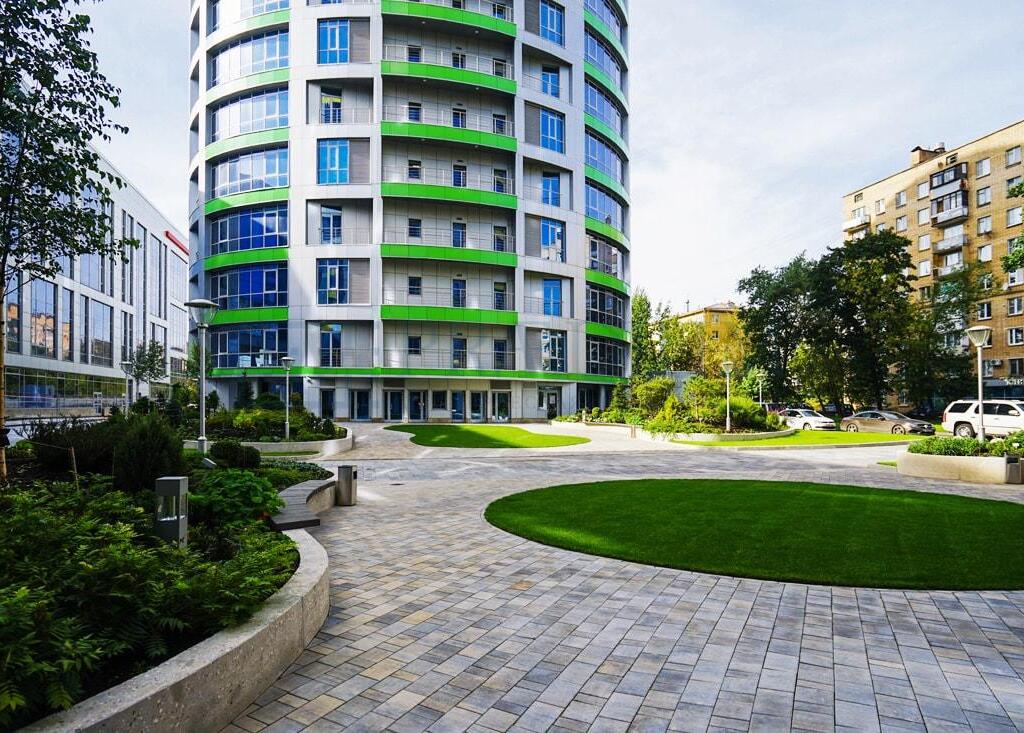 Описание: МФК "Poklonka Place" имеет общую площадь 142 907 кв. м, состоящий из 5 зданий: