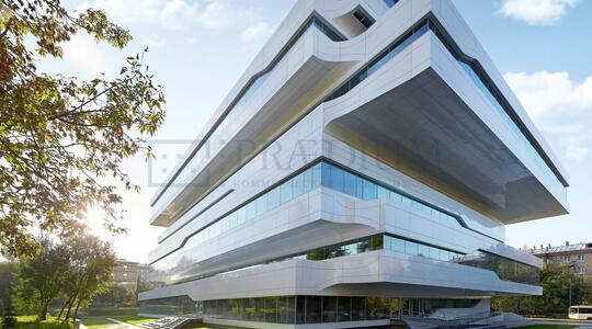 Описание: Британские архитекторы стремились создать ощущение легкости здания как в экстерьере, так и в интерьере, в заполнении пространства светом и организации свободных открытых пространств в интерьерах. Все здание выполнено в сложившейся архитектурной манере Захи Хадид - в авангардном стиле. Облицовка фасадов предполагается из алюминиевых панелей, окраска которых меняет оттенок в зависимости от угла зрения и степени освещенности (типа "хамелеон"). Оригинальная архитектура и уникальные отделочные материалы превращают офисный комплекс в произведение искусства.
