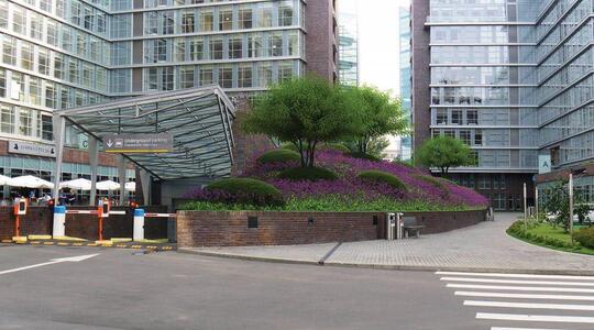 Под офисными корпусами предусмотрена подземная двухуровневая автостоянка с отдельным въездом и выездом.