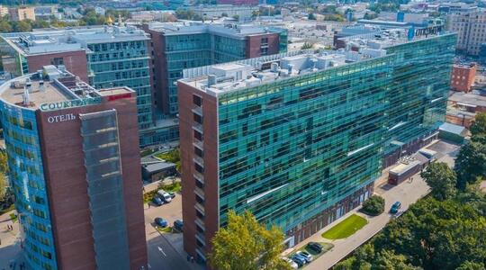 Описание: Комплекс "Вивальди Плаза" представляет собой четыре 11-этажных офисных корпуса, объединенных одноэтажными блоками, названных по аналогии с музыкальным произведением Антонио Вивальди "Времена года": "Зима", "Весна", "Лето" и "Осень", и 12-этажный корпус гостиницы "Marriott Courtyard" на 171 номер + 2 конференц-зала.